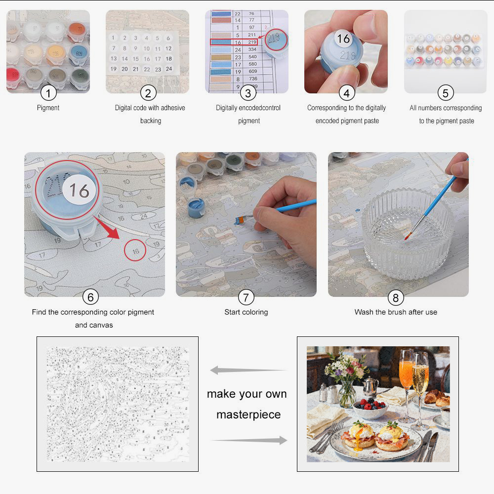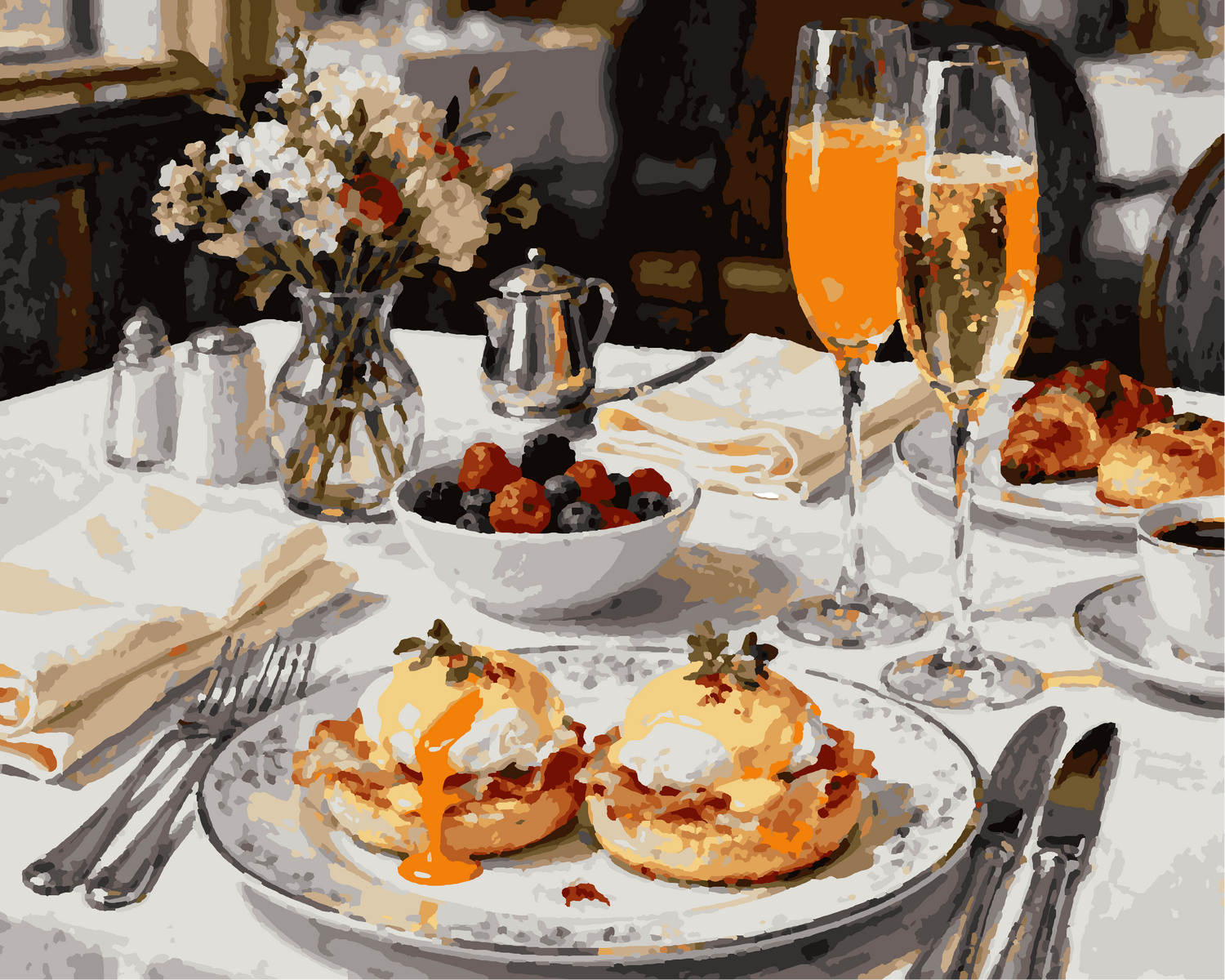 Discover our paint by numbers "Brunch Eggs Benedict 2", a paint by numbers that transforms a gourmet moment into a work of art.