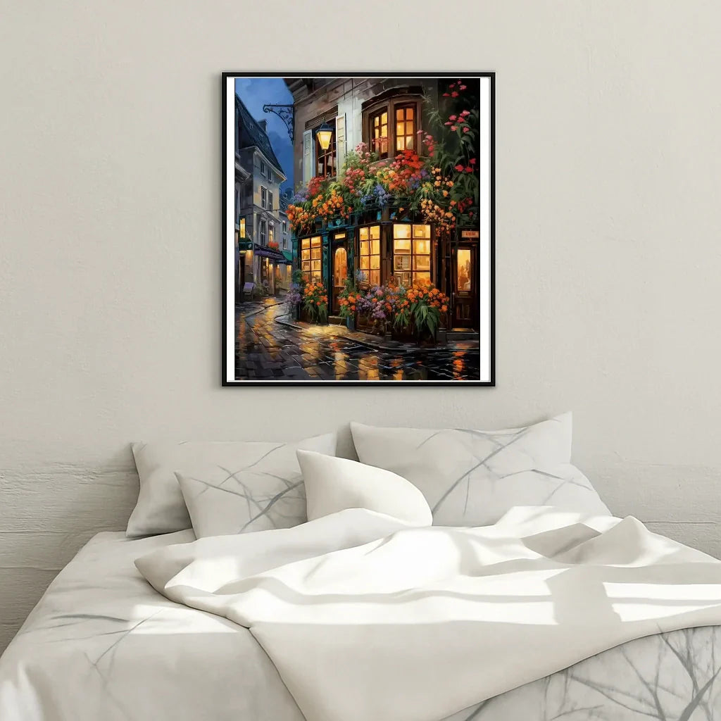 Dive into a painting where the softness of twilight caresses each petal. "Flower-filled boutique in the evening glow" by Steloria is a paint by numbers designed to awaken your senses and soothe your mind. The warm tones and delicate shadows recreate an intimate atmosphere, ideal for enhancing your interior or giving a refined gift. Easy to follow, each brushstroke gradually reveals a scene full of charm and poetry.