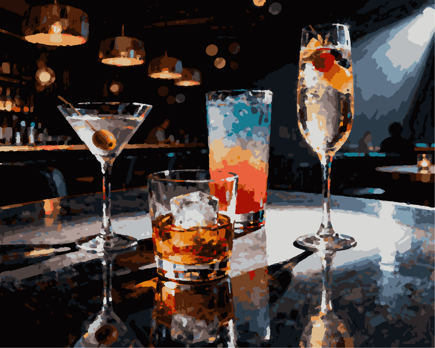 Immerse yourself in a cozy and sensual atmosphere with the paint by numbers Steloria “Cocktails Bar Lounge”. This painting invites you to recreate the warm glow of glasses, the golden reflections of cocktails, and the softness of a quiet evening. Designed for art lovers and those seeking relaxation, this kit transforms a creative moment into an elegant and refined wall decoration.