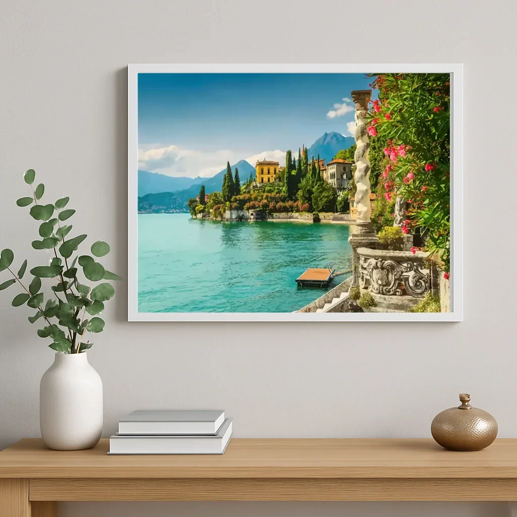 Let yourself be transported by the softness of an Italian afternoon with the paint by numbers "View of Lake Como" by Steloria. This kit offers a delicate scene where the light caresses the water, the mountains are silhouetted, and the colorful houses breathe Mediterranean tranquility.
