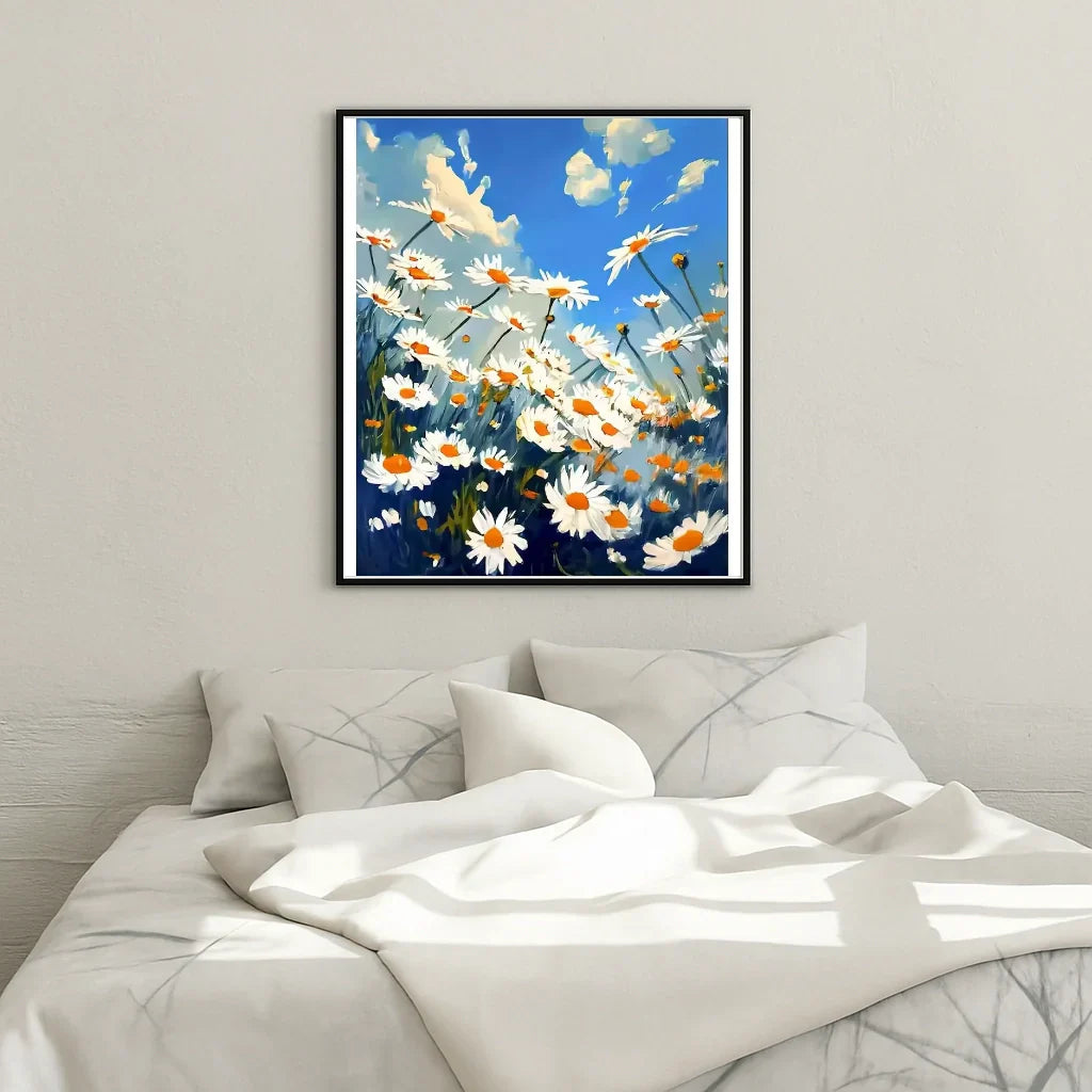 In a few hours, you see a field of daisies come to life: soft leaves, bright petals, mastered depth. The process is designed to maximize pleasure and success. Each number leads you to a touch after another, until the visual accomplishment that releases immediate pride. The acrylic texture dries quickly, retains color intensity, and withstands time.