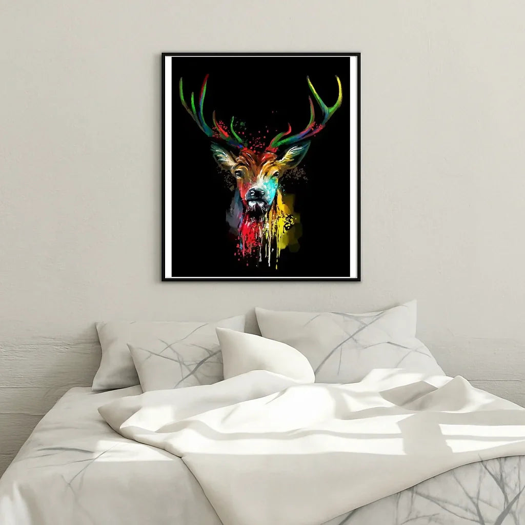 Give yourself an elegant and sensual moment of creation with the Paint by numbers kit "Deer face Pop Art" by Steloria. This captivating design, where the noble silhouette of the deer is adorned with pop colors, transforms each brushstroke into emotion.