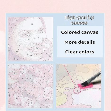 - Printed canvas in a ready-to-frame format, with precise numbered markers