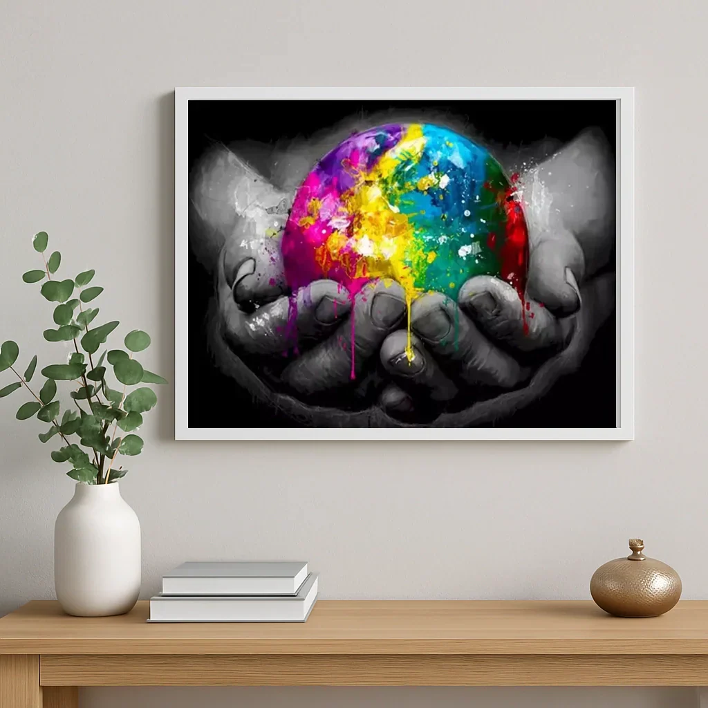 The pattern represents the Earth delicately held by hands, reinterpreted in Pop Art style to offer a play of intense colors and sharp contours. Each numbered area guides your gesture to gradually reveal the brilliance of the painting. The final rendering is both graphic and poetic: a modern composition that attracts the eye and stimulates the imagination.