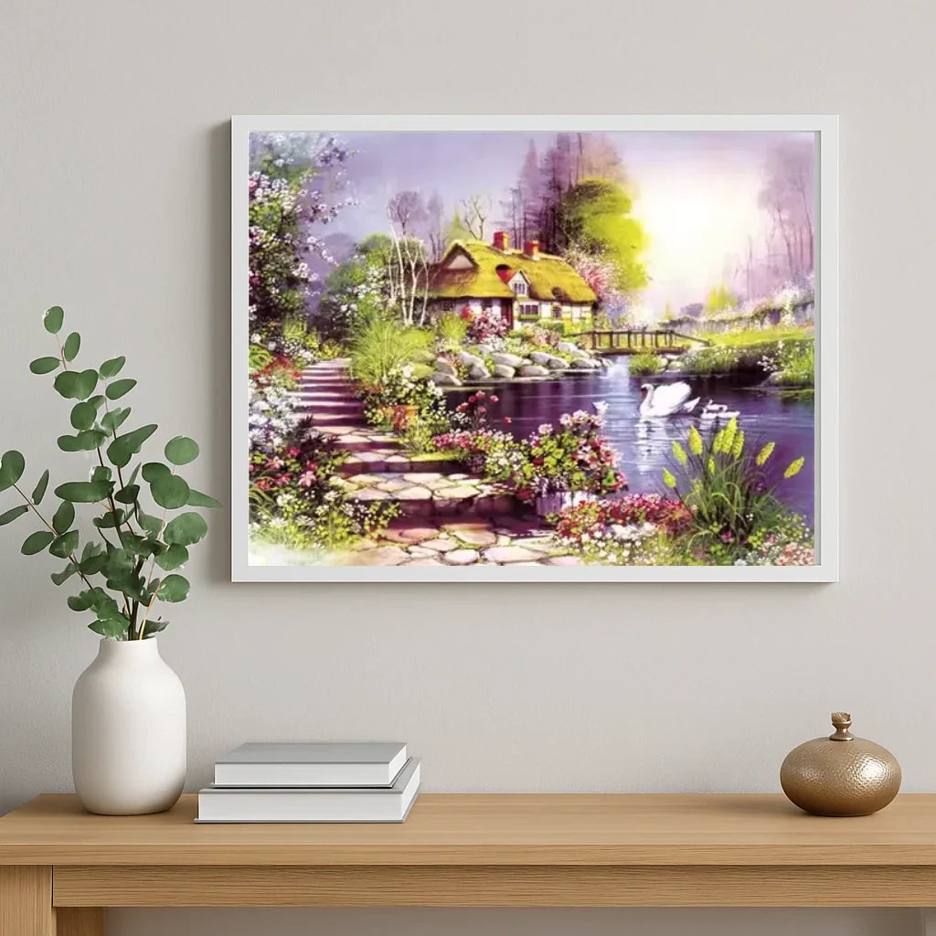 Designed for beginners as well as enthusiasts, this paint by numbers guides you step by step. Each numbered area invites gentle concentration, tranquil escape. The gesture becomes meditative, time stretches. Painting this house by the lake is about finding calm, slowing down, and savoring every nuance.