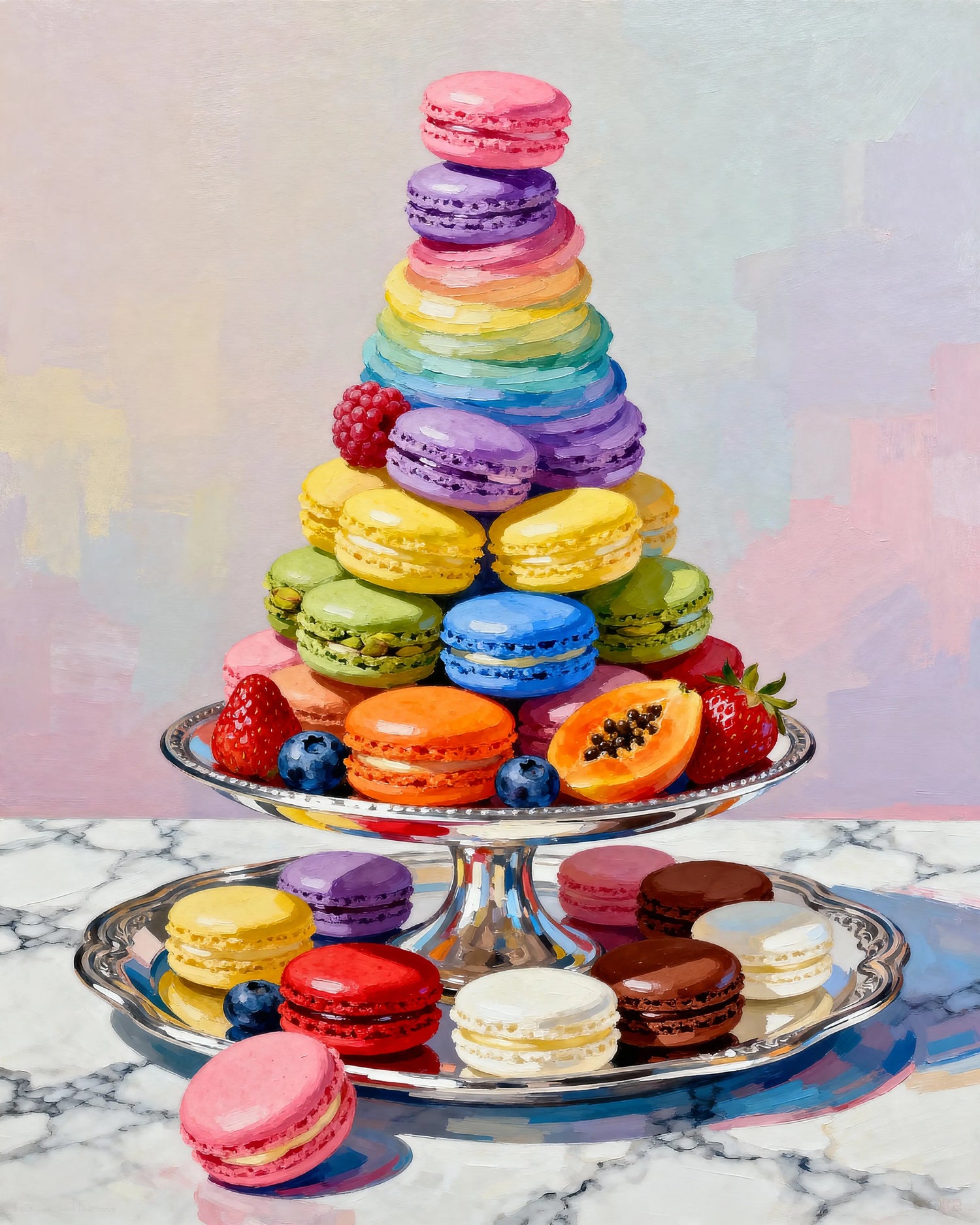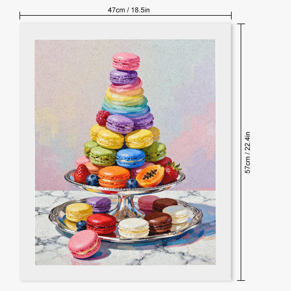 The canvas offers a refined composition: a macaron pyramid in pastel shades, subtly shaded to give relief and depth. The format is designed to be hung or gifted. The numbers guide your gesture, making painting accessible even to beginners while appealing to discerning enthusiasts with the quality of the rendering.