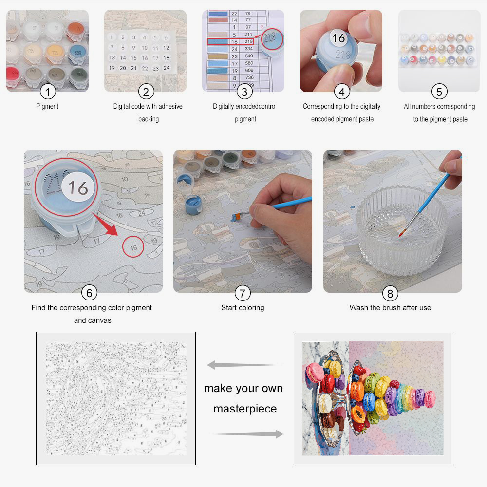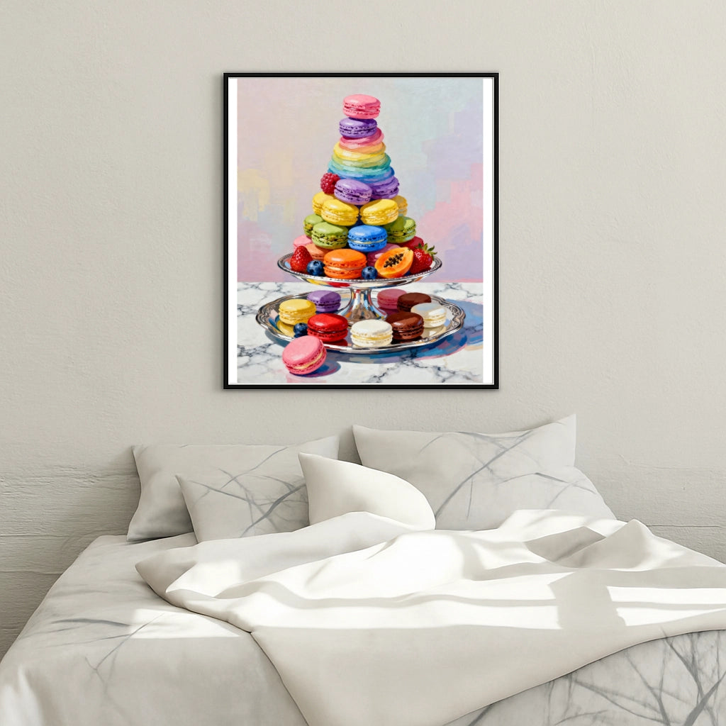 Dive into a sensory and creative experience with the "Macaron Pyramid" by Steloria. This paint-by-numbers canvas combines the delicacy of French pastries with a soft and sensual palette.