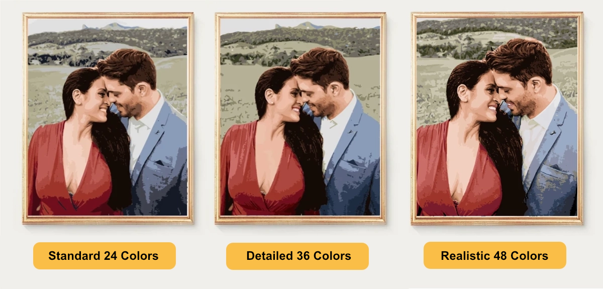 (24 colours), Detailed (36 colours) or Realistic (48 colours) depending on the level of realism and size you want for your painting.
