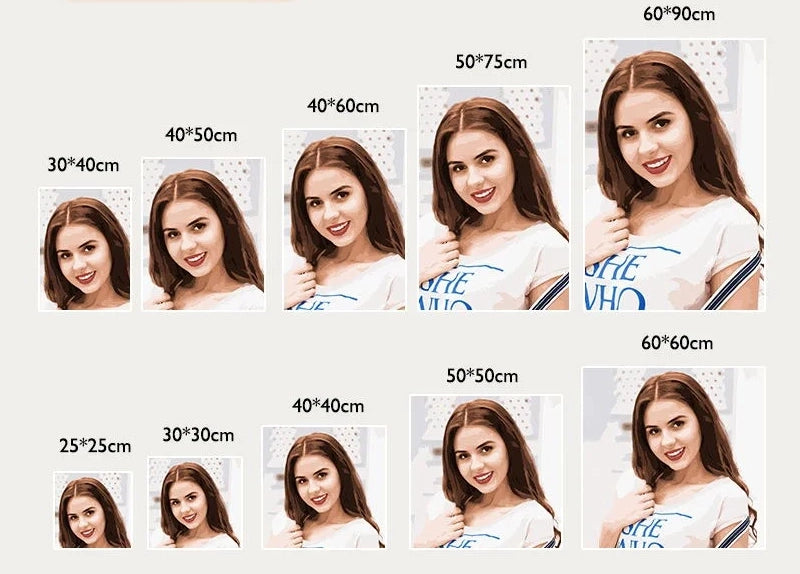 The size of your personalised painting will depend on the size of your image/photo and, above all, the area you want to reproduce.