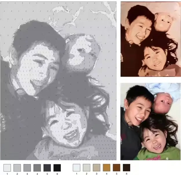 Choisissez votre image, définissez la taille, et Steloria se charge de la transformation : toile imprimée numérotée, couleurs optimisées, zones faciles à peindre. Le rendu respecte les contrastes et la chaleur de votre photo pour garder toute l’émotion initiale. Idéal comme cadeau romantique, souvenir familial ou pièce décorative, chaque kit est conçu pour sublimer ce qui vous est cher.