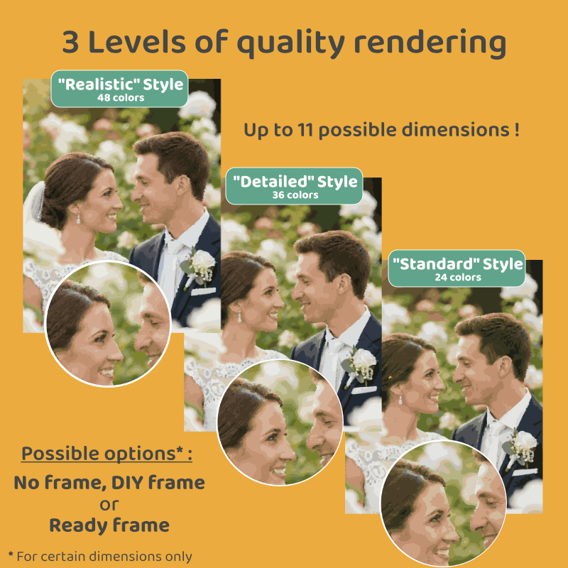 Niveaux de détails : Standard (24 couleurs), Détaillé (36 couleurs) ou Réaliste (48 couleurs)