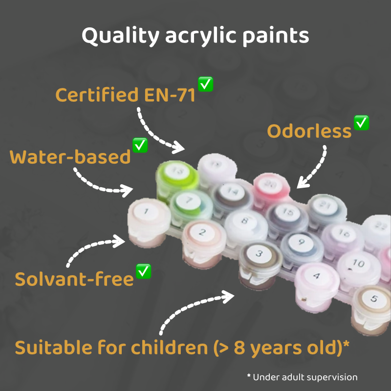 • Accessible to all: easy-to-read numbers, opaque pigments, video guide — impressive results even without experience.