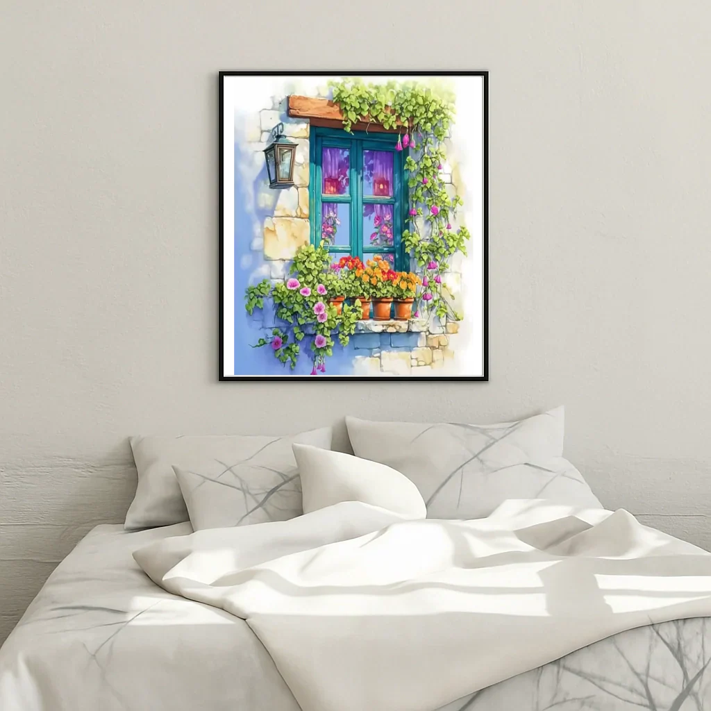 Give yourself a suspended moment with the paint by numbers Steloria "Street-facing window with flowerpots". This delicate scene evokes the sweetness of a sunny morning, the subtle scent of flowers, and the soft light that caresses the walls. Designed for both enthusiasts and experienced creators, this work to be done unleashes creativity without technical constraints. The result becomes an elegant piece of decoration, ready to enhance your interior or to be gifted.