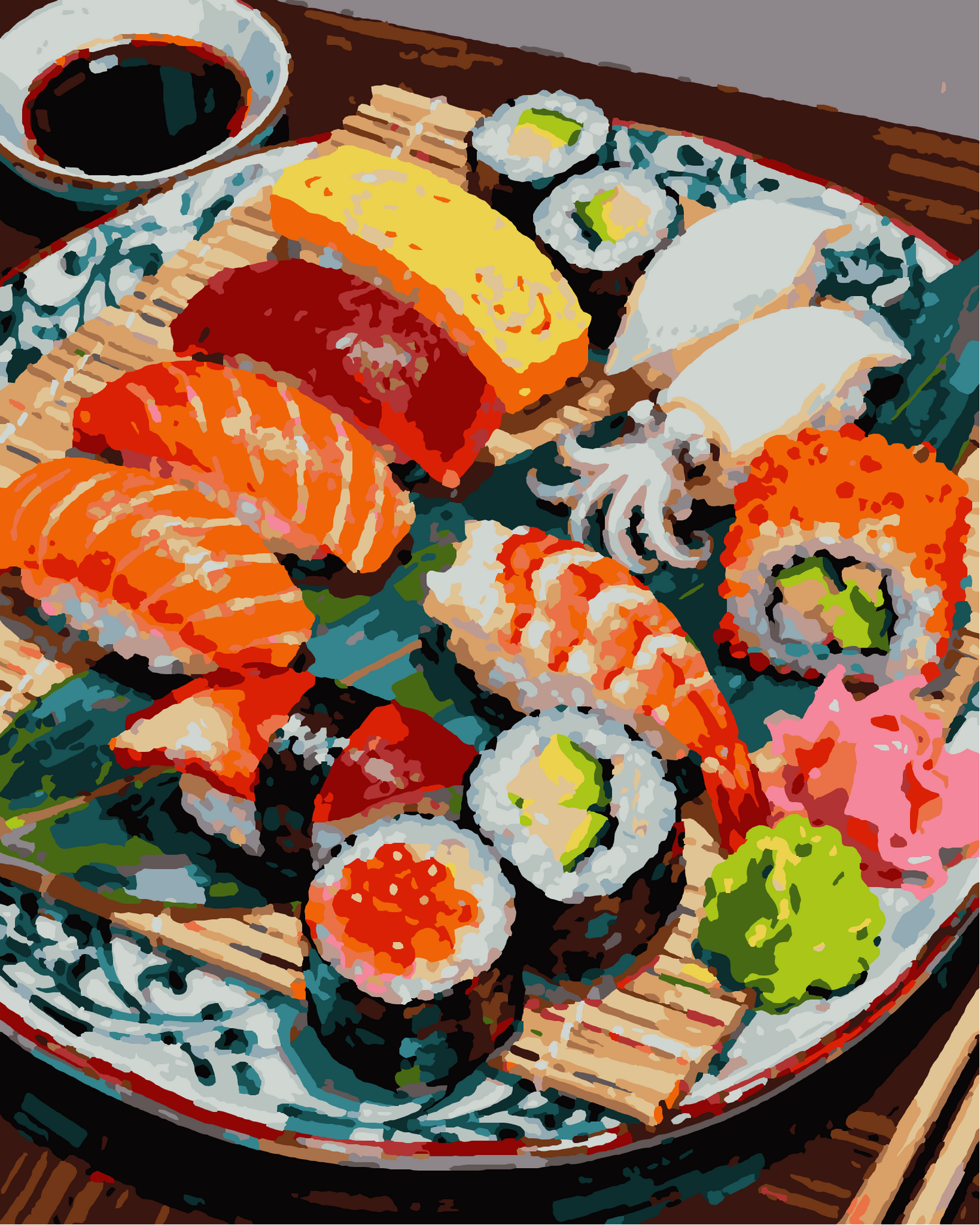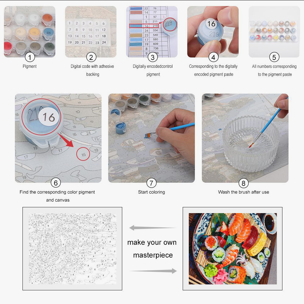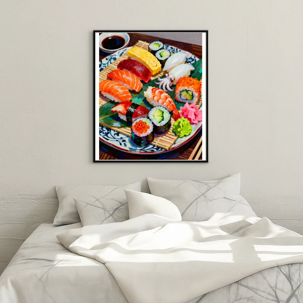 Indulge in the art of softness with Steloria. The Sushi Plate in paint by numbers is an invitation to creative pleasure and refined decoration. Dare to create, savor each hue, and let this painting tell your story.