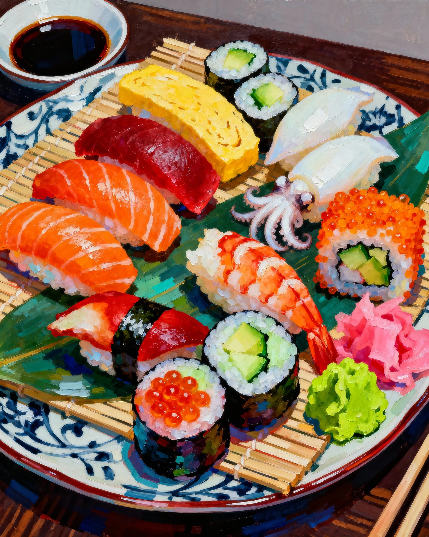 Designed to enhance your interior, this painting evokes the finesse of a Japanese meal, carried by a harmonious and refined palette.