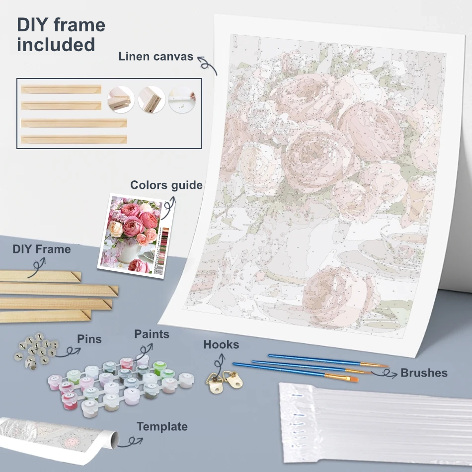- 1 high-quality printed canvas, numbered for each area to paint.