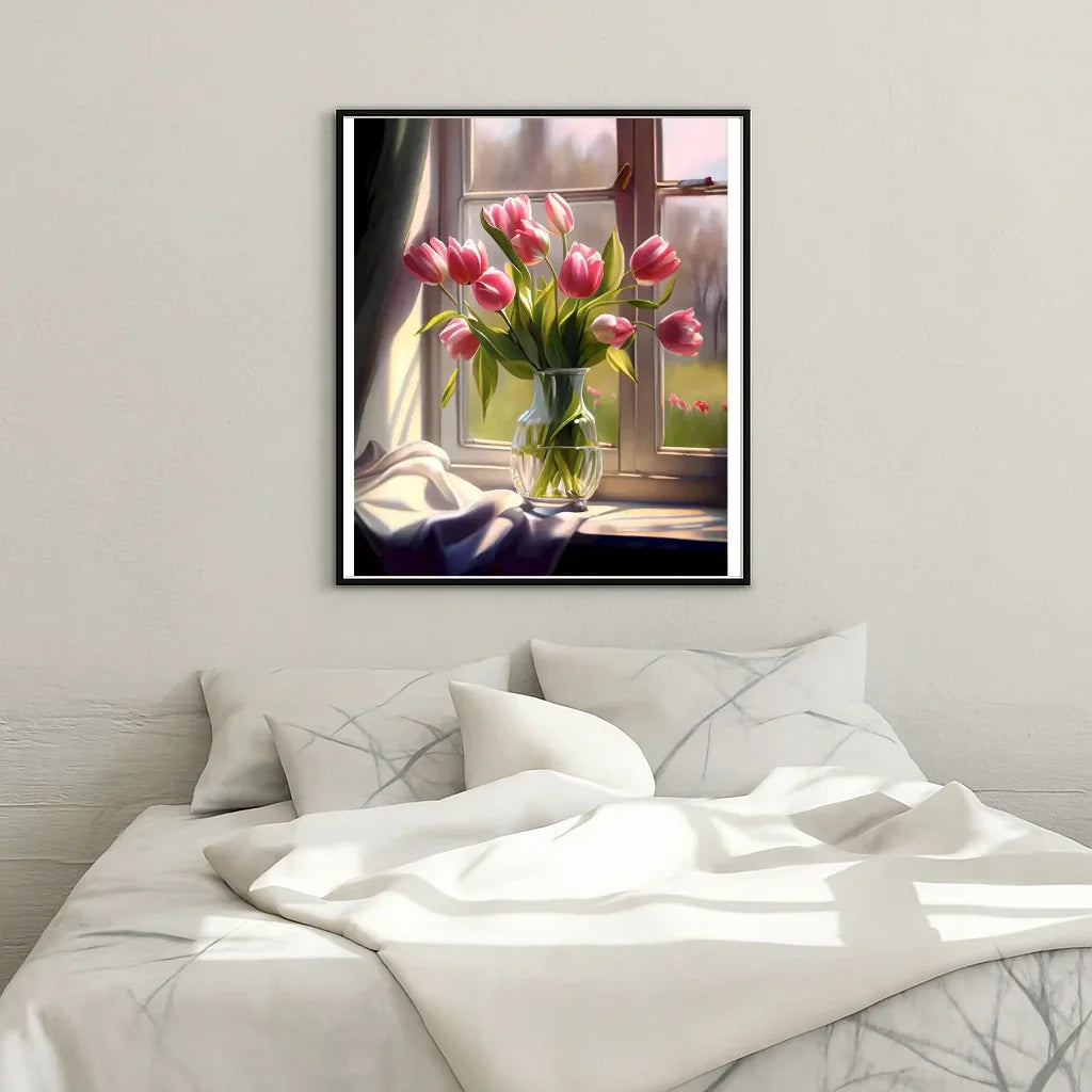 Immerse yourself in a sensory journey with "Pink Tulip Vase", a paint by numbers kit by Steloria. This delicate composition captures the grace of blooming tulips and the softness of pink tones, ideal for adding a romantic and refined touch to your interior. Designed to awaken creativity, this guided painting transforms each brushstroke into a soothing and rewarding experience. Whether you are a beginner or a seasoned amateur, let yourself be seduced by the clarity of the markers and the quality of the supplies for a result worthy of a gallery.